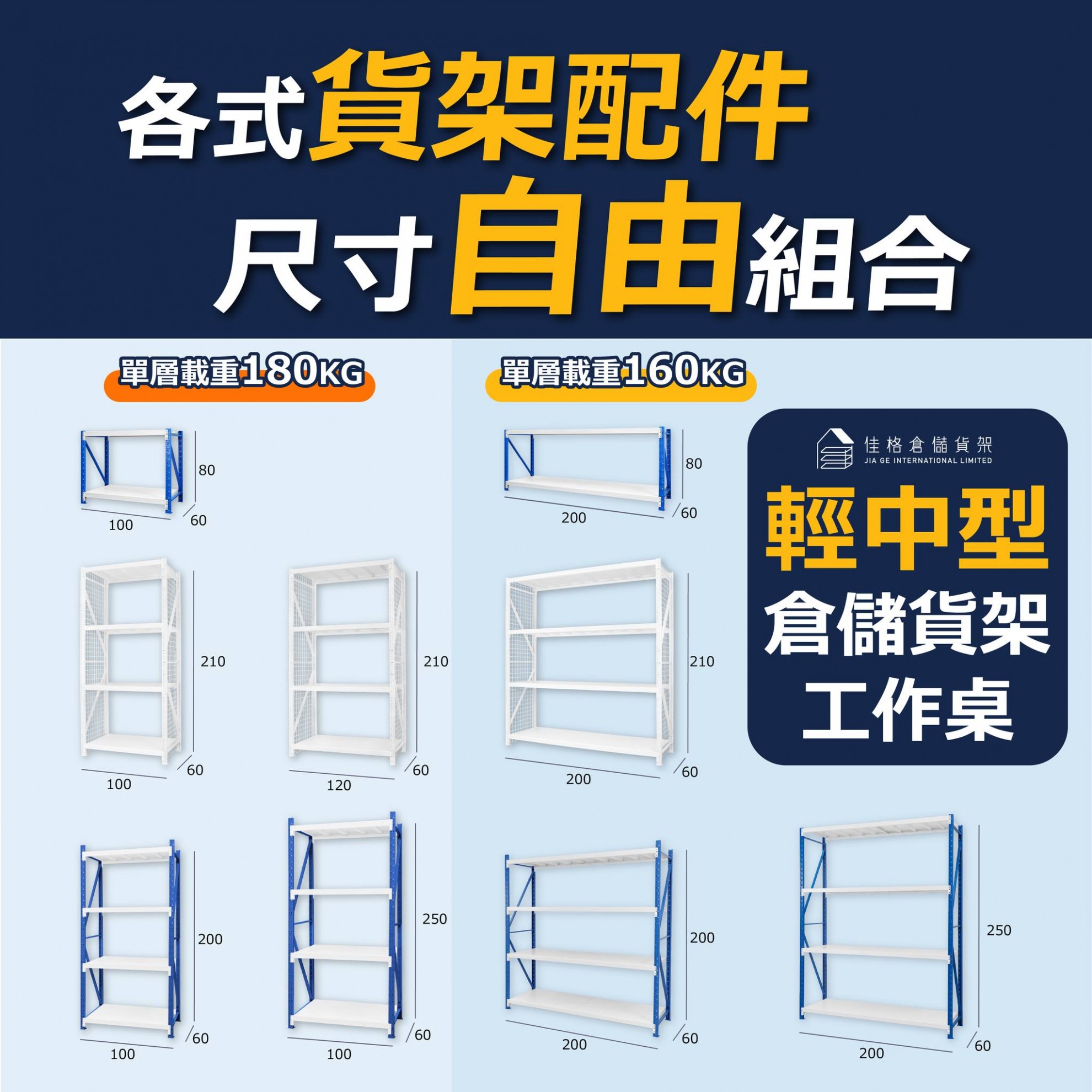 從輕型到中型、從小尺寸到長度 2 公尺、甚至高達 250 公分,佳格倉儲貨架 都能依需求彈性配置,讓你的倉儲作業更流暢、貨物管理更清晰。如果你還不確定該怎麼挑選適合的貨架尺寸,或想規劃未來可擴充的倉儲動線,歡迎聯繫佳格倉儲貨架團隊,提供專業建議與多樣化貨架尺寸,讓你的倉庫從此井然有序!